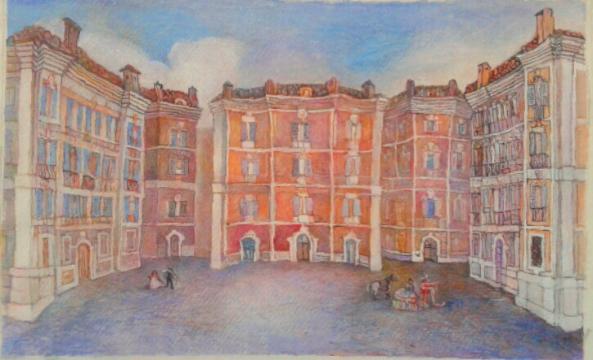 Act I Scene 5... from opera DON GIOVANNI gouache 11 " x 17 "......2015