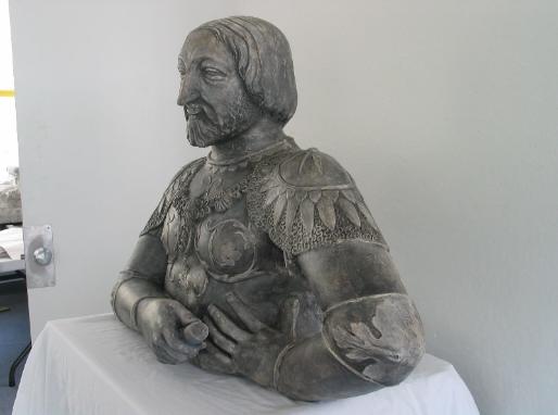 Plaster cast statue of Francis I of France (1494-1547) : After and before restoration