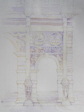 The two WATERCOLORS below are studies of each of the small ARCHES on the