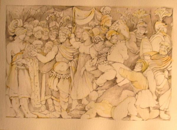 The very rapid, "down and dirty" watercolor sketches (ABOVE) of two more of the tondos