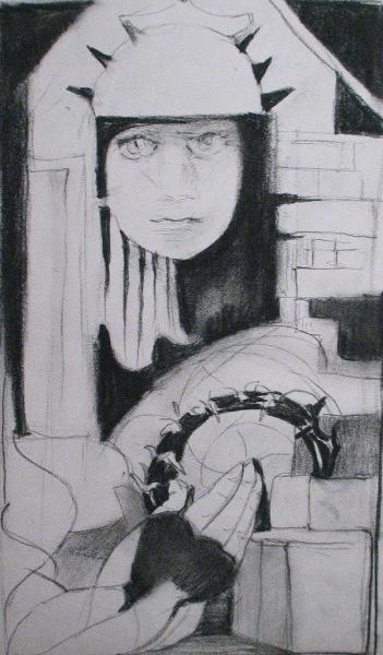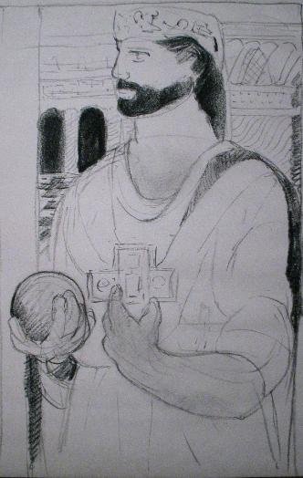 Below are three charcoal studies of HELEN, Constantine as emperor of the East, and of