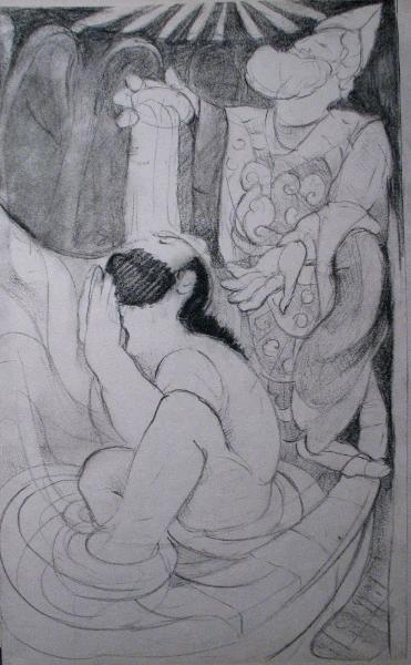 St. Helena with the relics charcoal 10 " x 20 "